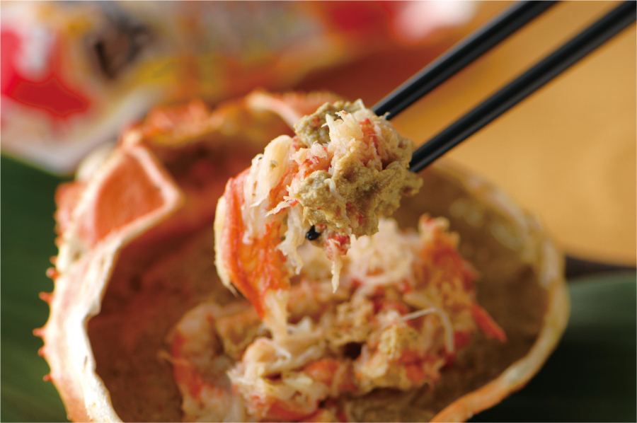 香住港は関西で唯一、紅ズワイガニが水揚げされる漁港。紅ズワイガニは香住かにと呼ばれて親しまれています。紅ズワイガニ特有の濃厚ながらもさっぱりとした深みのある味わいのかに味噌と、みずみずしく独特の甘みのある、かに身を乗せて紅ズワイガニの甲羅に盛りました。晩酌のお供はもちろん、パスタに混ぜて、トーストに乗せて、手軽に簡単にお楽しみいただけます。