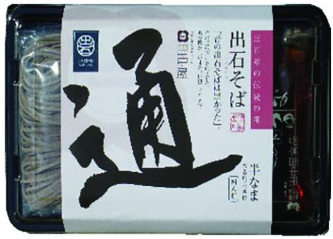 宝永三年の国替の際に信州上田から伝わって以来、300年の歴史を誇る出石そば。「昔の出石そばは黒かった」というそば通の 声にお応えし、そば実の外皮を多く使用した黒いそばを再現しました。そば本来の風味を生かした懐かしい味わい、力強い食感 をお楽しみください。