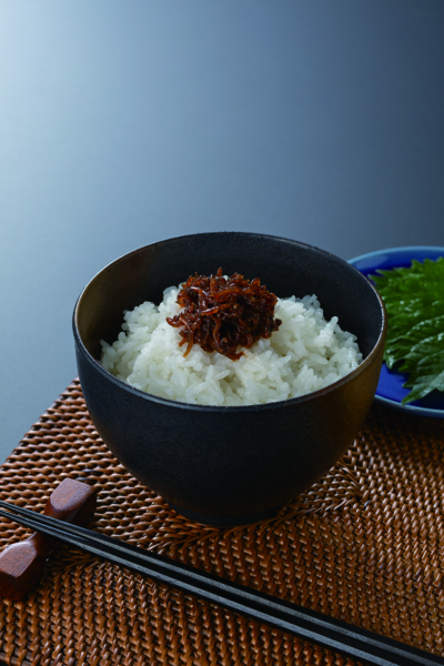 大阪湾・兵庫県産の生しらすを、垂水漁港の工場で炊き上げた「しらすのくぎ煮」。丸大豆醬油などを用いた樽屋五兵衛秘伝のくぎ煮タレで、形を崩さないようふんわり仕上げています。いかなごのくぎ煮で用いるこだわりの味付け製法を生かした、くぎ煮文化継承商品です。