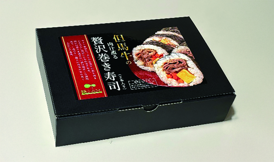 但馬のブランド和牛「但馬牛」のブリスケ( 肩バラ肉の一部)をたっぷり使用。肉の含有量が約35%と贅沢なので満足感あり。濃厚でありながら旨みを感じられるように独自の調理法で仕上げました。保存が効く冷凍巻き寿司で、電子レンジで簡単に調理できます。