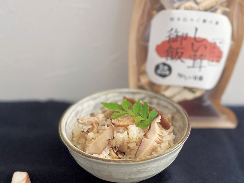 北摂で原木しい茸生産 76年、しいたけ農家なら ではの技で仕上げた、香 り・旨み・食感の三拍子が 揃ったしい茸ご飯の素。し い茸と出汁を分けて仕込 んだこだわり製法。作り方 はとても簡単で、たっぷり 入った乾燥しい茸は、炊き 上げるとぷりっとした食感 がよみがえります。