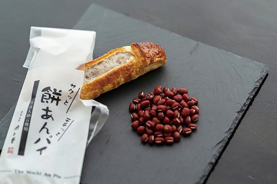 丹波大納言の風味が際立 つ粒あんと餅を、香ばしい パイ生地で包んだ「餅あん パイ」。サクッとしたパイ、 モチッとした餅、この二つ の食感に粒あんの風味が 重なった三層構造。丹波 大納言を主役に、異なる 食感と豊かな風味を一 度に楽しめる和洋折衷 スイーツです。