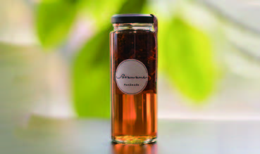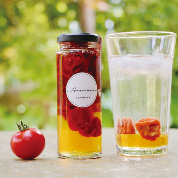 酸味と甘みをぎゅっと凝縮 したドライトマトをフルー ティなシロップ漬けに。三 木市産トマトの中でも、酸 味を抑えた「フルティカ」 を使用し、三木市産のぶ どうを使い漬けました。ス イーツ感覚で、炭酸水や お酒で割ってと楽しみ方 が広がります。