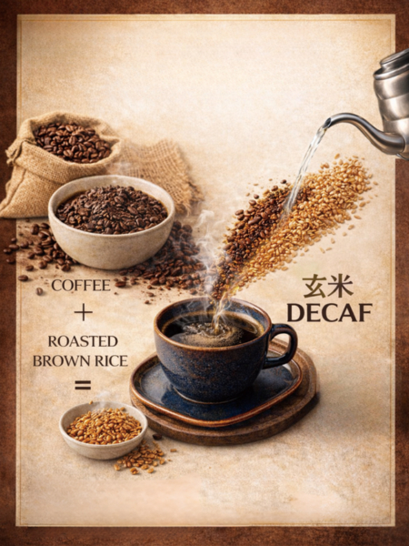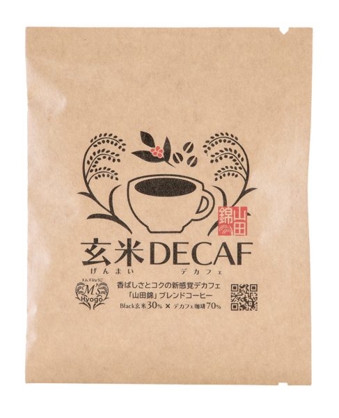 兵庫県産・有機栽培の酒米 「山田錦」玄米を焙煎した 「有機Black 玄米」と神 戸の人気スペシャリティ コーヒー店FIST BUMP COFFEE ROASTERY のデカフェ珈琲をブレンド。 新感覚のドリップコーヒー です。カフェインが気にな る方にも、毎日の一杯とし ておすすめです。 ※焙煎玄米顆粒(業務用 原料)としても展開