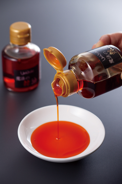 但馬・出石の四川料理店 「しゃんらん出石」特製。 自家栽培の唐辛子と朝倉 山椒をじっくりとキャノーラ 油に抽出し、十数種類の 香辛料で香り高く仕上げ た自家製辣油です。辛さ の中に旨みと奥行きが広 がり、和洋中どんな料理 にも合う風味が食欲をそそります。