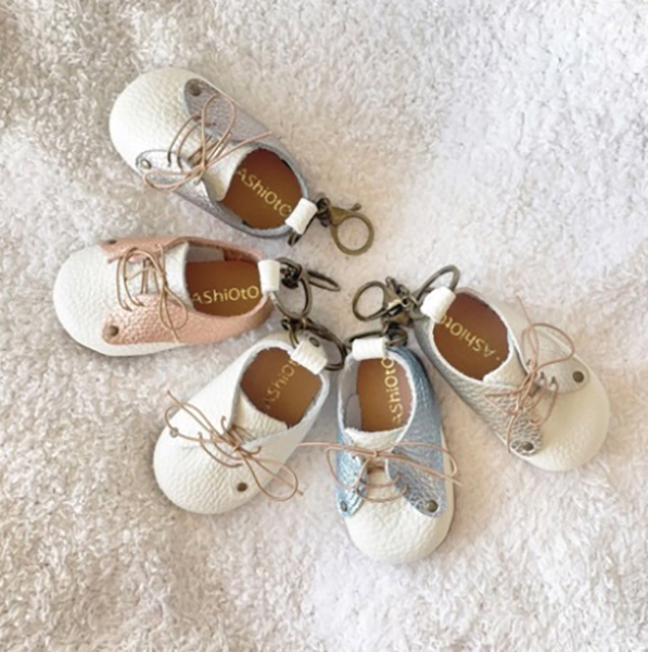神戸の現役靴職人と一緒 に作る、キーホルダー型の ファーストシューズ。姫路 産とイタリア産のやわらか な本革で、新生児サイズ (9cm)の小さな靴を片足 ずつ仕上げる特別な体験 です。完成した靴は世界 に一つだけの思い出とし て、また将来お子様への プレゼントにも。仕上がっ た商品を購入することも 可能です。